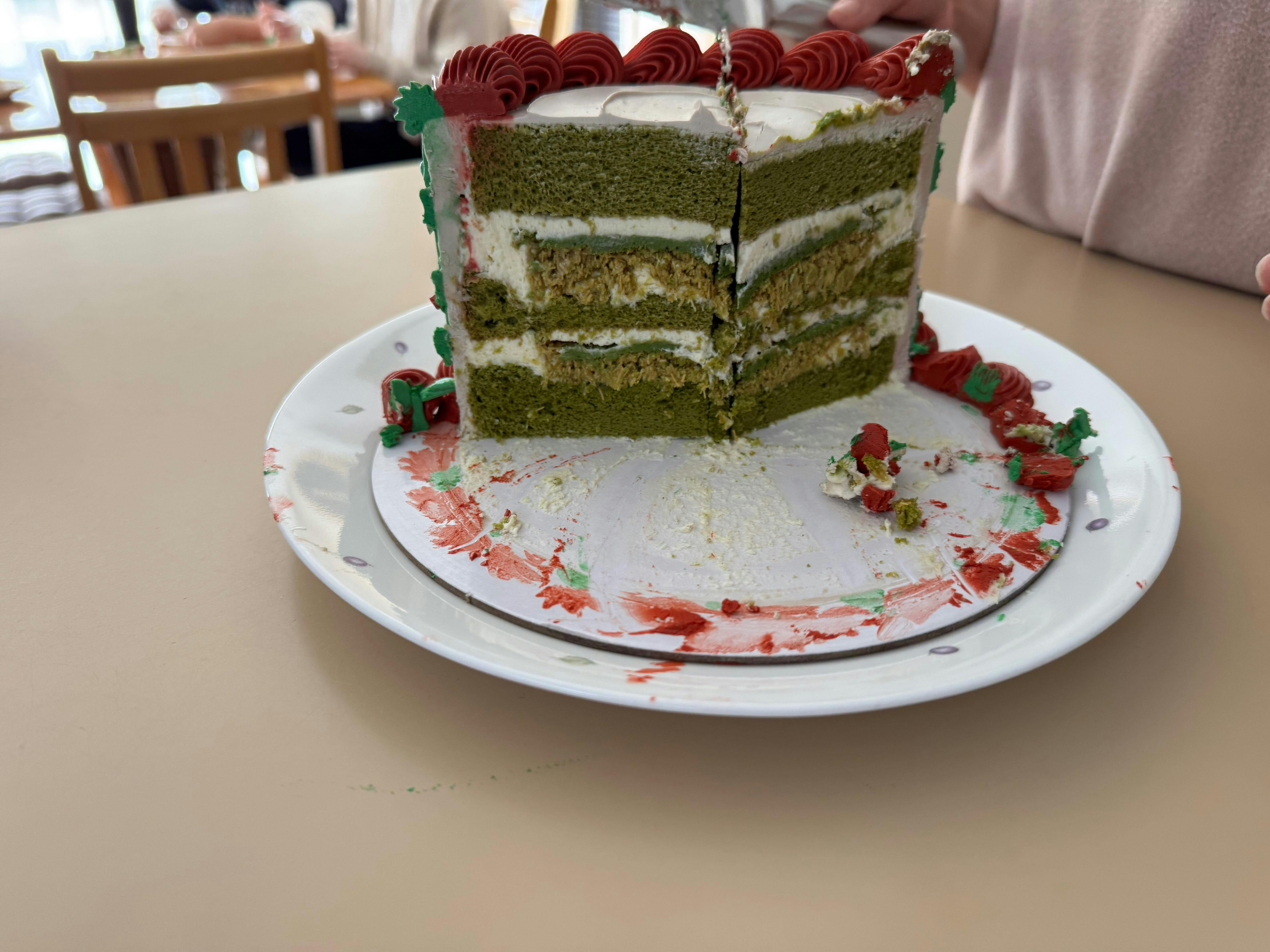 The Christmas decorations were beautiful done and the cake was so light, fluffy and tasty. Not overly sweet which suited my taste palette. Could easily eat more than one slice !